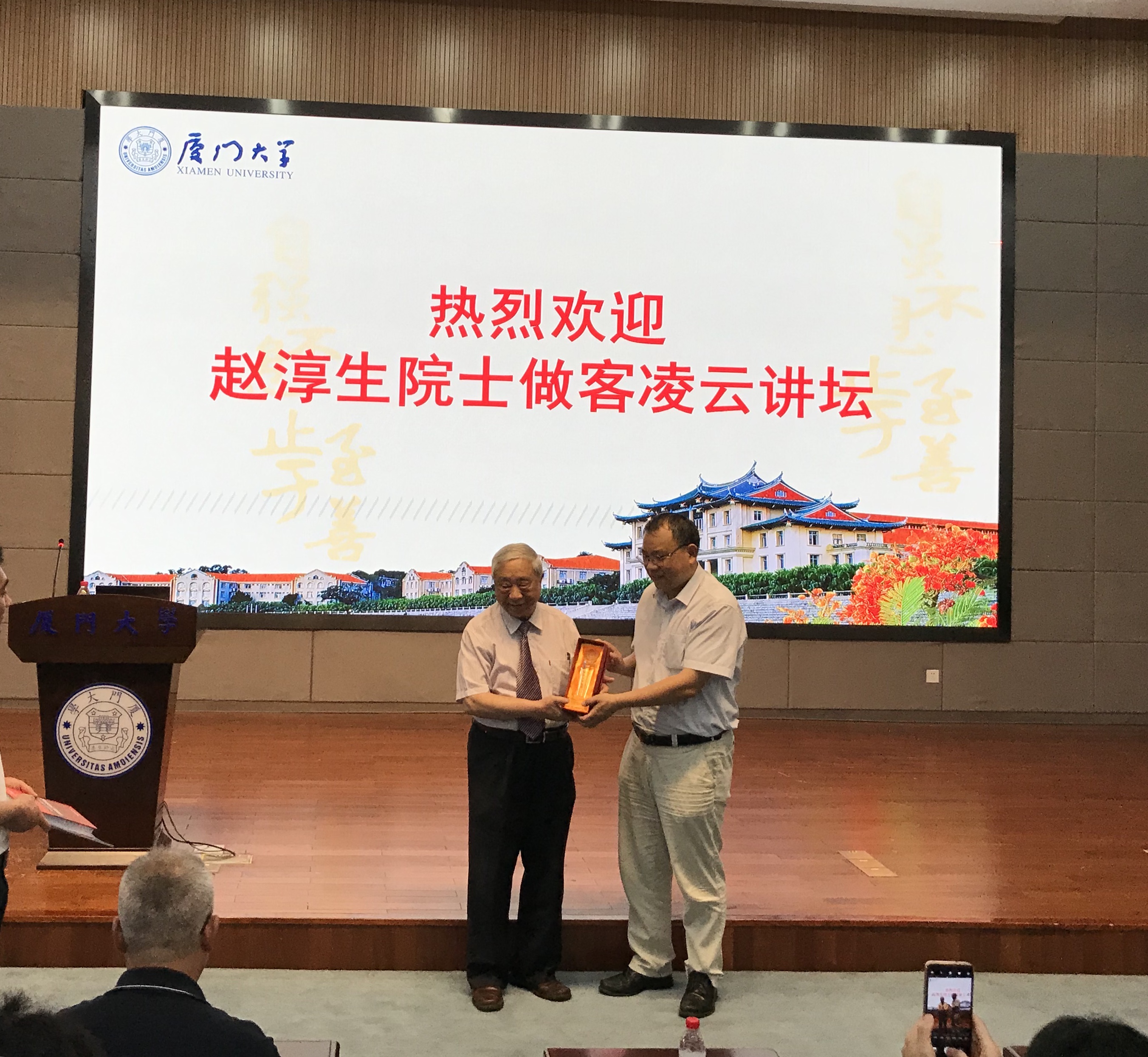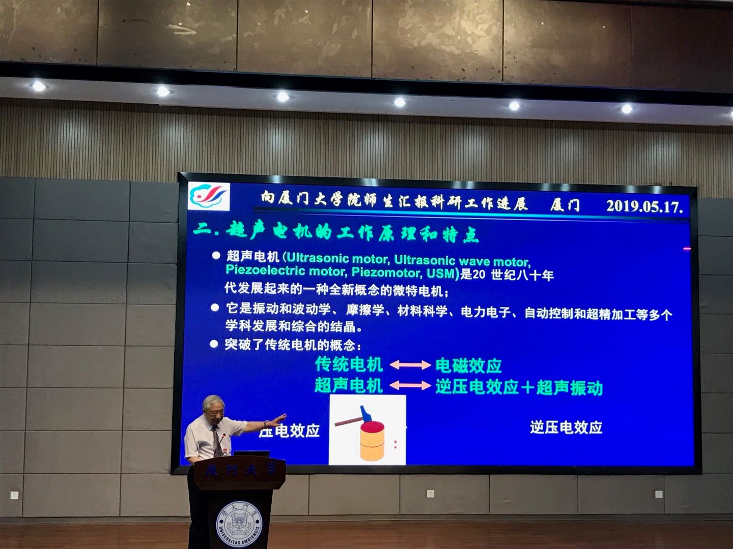 2019年5月17日上午,南京航空航天大学赵淳生教授应邀至我院进行学术交流,在翔安校区图书馆2号报告厅作了题为“创新创业,追逐超声电机中国梦”的学术报告。院党委书记王康平为赵淳生教授颁发凌云讲座纪念杯,机电系上百余名师生聆听了本次讲座。