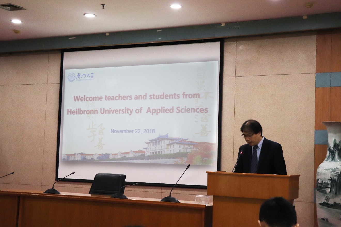 2018年11月21-25日,我院与德国海尔布隆应用科学大学(Heilbronn University of Applied Sciences)2018年的学习周交流活动在我校举行。学习周为我院与德国海尔布隆应用科学大学签署的交流合作项目,旨在拓宽学生的国际视野,培养学生跨文化交流的能力,促进厦门大学与德国海尔布隆应用科学大学的交流学习。在学习周期间,德方一行26名师生将与我院师生进行一对一的教学、科研与文化交流。