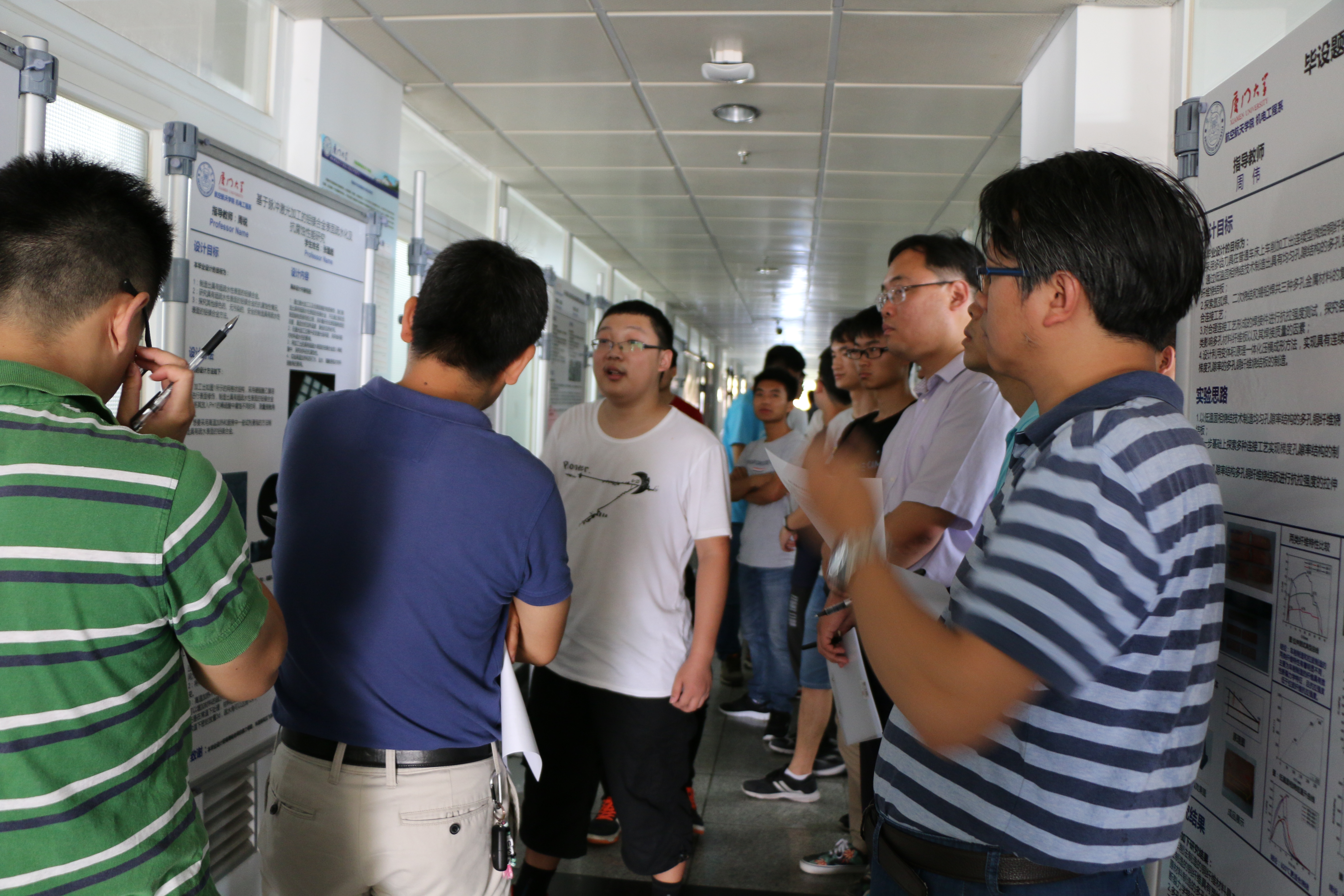 2017年5月31日下午,我系2013级本科生优秀毕业设计评选活动在嘉庚四号楼6楼展厅如期举行。此次评审小组由机电工程系主任侯亮教授指导,副主任祝青园副教授等5名教学组专家组成。参评的23名学生由第一轮本科毕业设计答辩中根据答辩成绩高低推选产生。