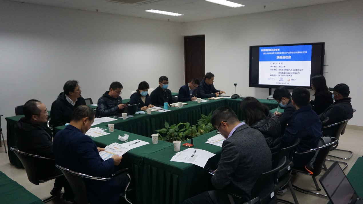 2021年1月15日,由厦门大学、厦门金龙联合汽车工业有限公司、厦门盈趣科技股份有限公司联合承担的科技部创新方法工作专项“基于多维度创新方法的疫情防控产品研发与快速转化应用”项目启动会在厦门大学顺利召开。厦门市科技局体系创新与政策规划处处长孙笑东、项目负责人侯亮教授,厦门金龙联合汽车工业有限公司副总工程师、研究员级高级工程师陈卫强,厦门盈趣科技股份有限公司总裁助理陈建成及项目组骨干成员出席会议。