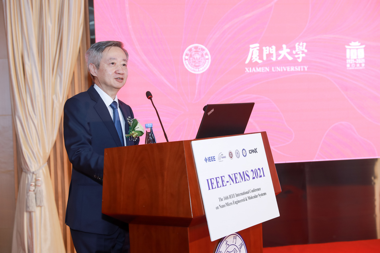 专场活动上,田中群院士深情介绍了葛文勋先生生平事迹及其设立的初衷。葛文勋先生是厦门大学最杰出的校友之一,国际著名的机电工程学家、教育家,固态传感器领域的创始人之一,微机电系统(MEMS)领域的先驱者之一,是大陆及台湾早期半导体产业主要发起者及推动者,为国内外培养了一大批优秀人才。葛文勋先生耄耋之年,仍为母校筹设萨本栋教育科研基金会,推动创立萨本栋微机电研究中心,倡议复办机电工程系,为母校学科发展呕心沥血,是践履笃行厦门大学“知无央,爱无疆”精神的典范。在前任校长田昭武院士、前任校长林祖赓教授、前任校长朱崇实教授等的共同倡导下,于百年校庆期间成立“葛文勋奖学/奖教金”。筹备工作组将葛文勋先生生平事迹整理成书《知无央 爱无疆——纪念葛文勋先生》,并在校友馆、亦玄馆、航空航天大楼举办葛文勋先生事迹展。恰逢IEEE NEMS 2021国际学术会议,特别设立葛文勋纪念专场活动,以弘扬葛文勋先生爱国爱校,献身科学和教育的精神,激励广大师生奋发图强、追求卓越。