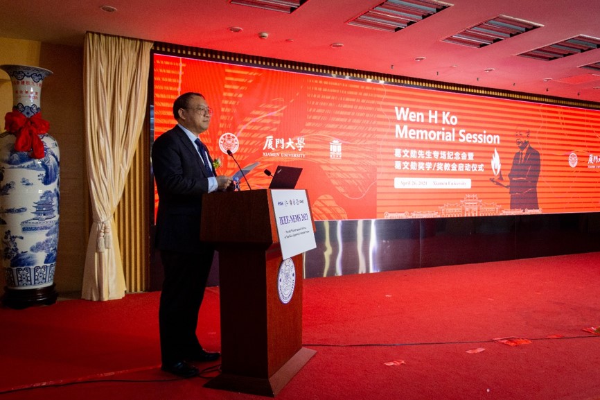 2021年4月26日,为纪念厦门大学杰出校友葛文勋先生,第16届IEEE微米/纳米工程与分子系统国际会议在厦门大学顺利开幕,会上特设的“葛文勋奖学/奖教金”专场活动当天下午在科学艺术中心一楼多功能厅举行。中国工程院院士西安交通大学蒋庄德教授、中国科学院院士厦门大学田中群教授、中国科学院院士厦门大学孙世刚教授、北京大学张海霞教授、罕王微电子(辽宁)有限公司董事长黄向向、化学化工学院院长谢兆雄教授、厦门大学档案馆馆长石慧霞、厦门大学教育基金会副秘书长赵晓慧、航空航天学院副院长侯亮教授、萨本栋微米纳米科学技术研究院副院长王敏等国内外各大高校的师生两百余人线下参加了专场活动,专场纪念会在iCANX线上同步直播,包括新加坡工程院院士新加坡国立大学洪明辉教授在内的在线人数达3万余人。专场活动分为“葛文勋奖学/奖教金”启动与颁奖仪式和学术报告两部分。