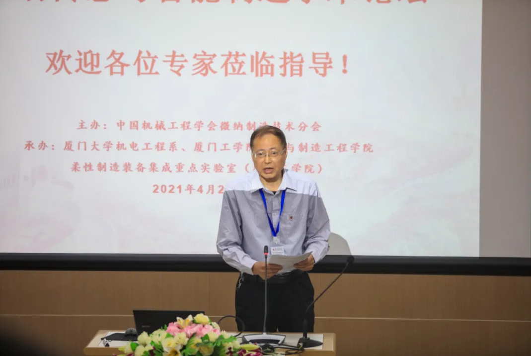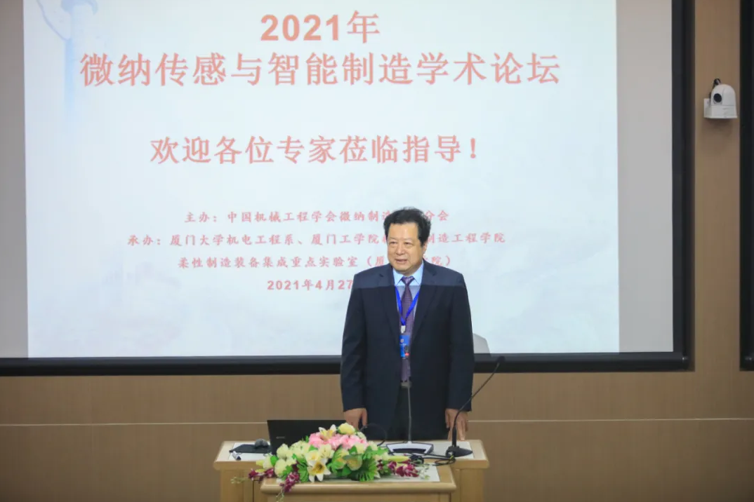 2021年4月27日,“2021年微纳传感与智能制造学术论坛” 在厦门工学院正心大厦2楼学术报告厅举行。本次会议由中国机械工程学会微纳制造技术分会主办,厦门大学机电工程系和厦门工学院柔性制造装备集成福建省高校重点实验室联合承办。中国机械工程学会微纳制造技术分会理事长蒋庄德院士、西安交通大学赵立波教授、厦门大学姚斌教授、北京航空航天大学周向阳教授、中国科学院微电子所毛海央研究员、西安交通大学田边教授、以及厦门工学院李德文董事长、田东平校长、李咏梅副校长、李文副校长,张希农院长、贾继德副院长、厦门大学机电工程系周伟教授等60余位专家学者参加了本次会议。论坛立足学科前沿,旨在加强各研究单位的学术交流与合作,推动微纳传感与智能制造技术领域的协同发展。