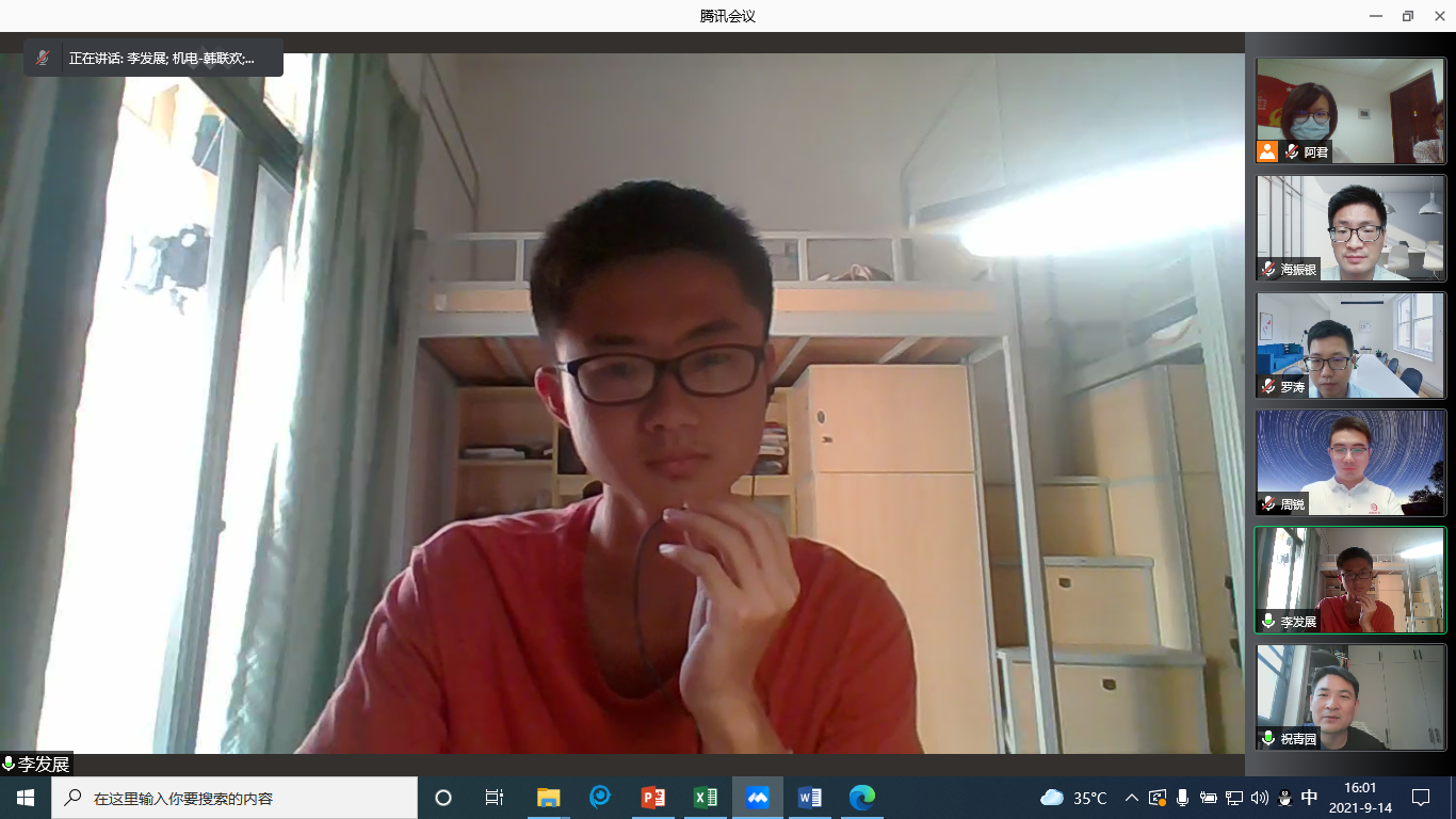 在响应疫情防控的前提下,9月14日下午机电工程系召开机械设计制造及其自动化专业2019级学生的专业方向线上介绍会,系副主任祝青园教授、航空航天教育培训中心主任周锐高级工程师、陈松月副教授、叶绍干助理教授、韩联欢助理教授、罗涛助理教授、海振银助理教授等出席会议。