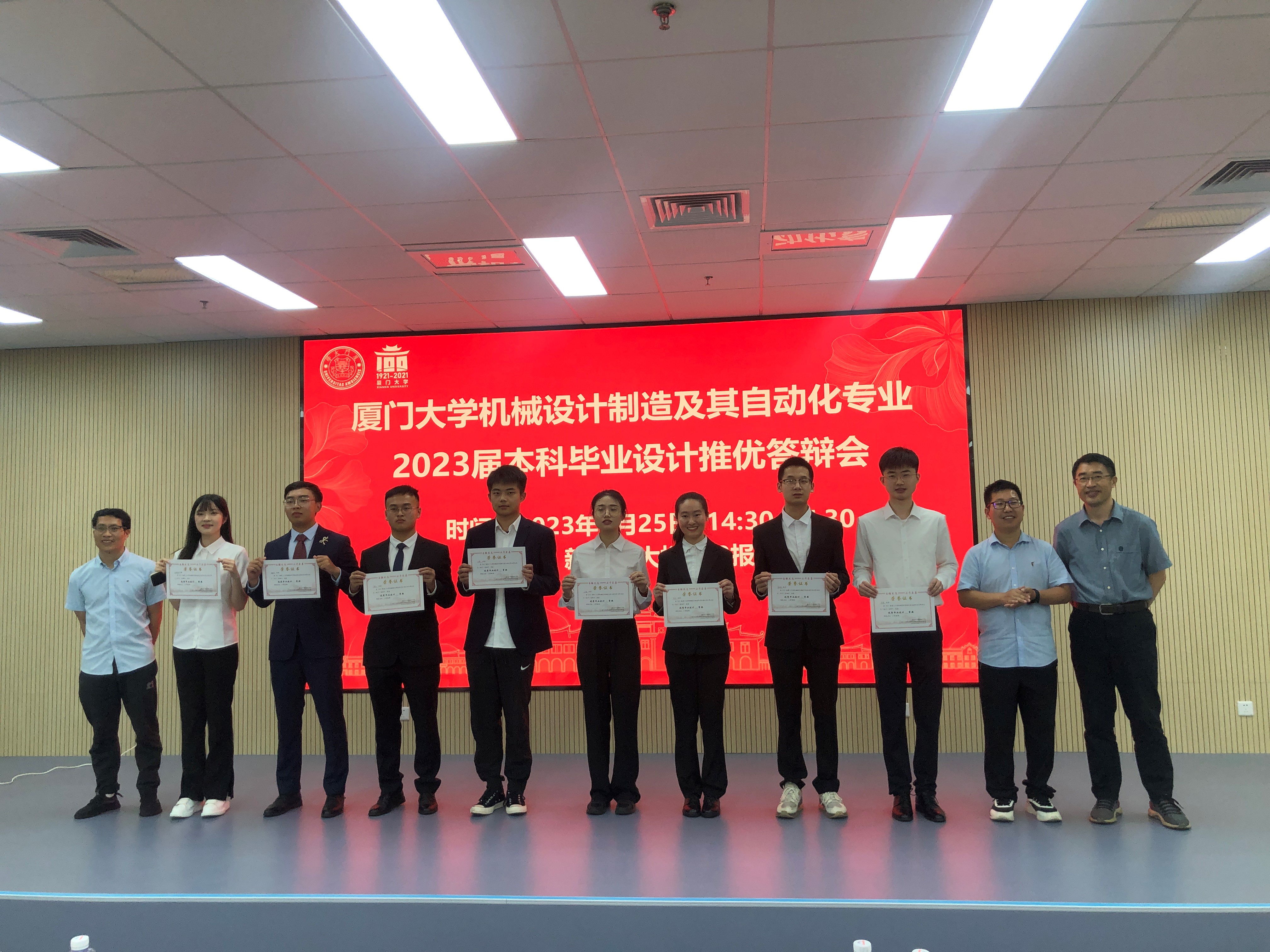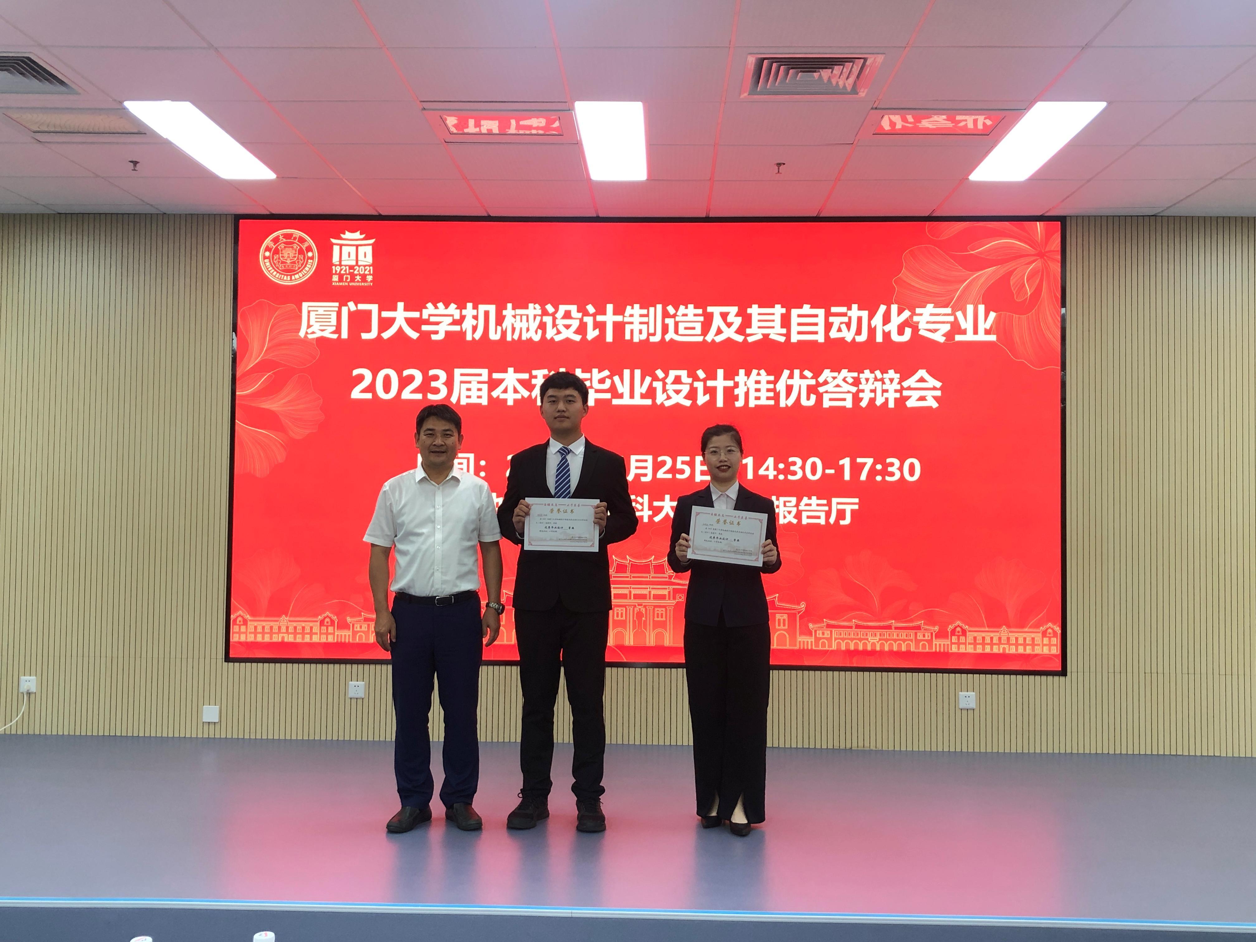 机械设计制造及其自动化专业已连续八年坚持“开题报告-中期检测-毕业答辩-推优展示”的闭环追踪管理毕业设计全流程。本专业一贯重视本科生的培养,尤其关注本科生毕业设计环节的质量提升,努力为同学们打造视野更高更开阔的平台,帮助同学们提升科研素养培养学习能力,也希望各位同学继续发扬厦门大学“自强不息,止于至善”的校训精神,投身“制造强国”的伟大战略宏图中。