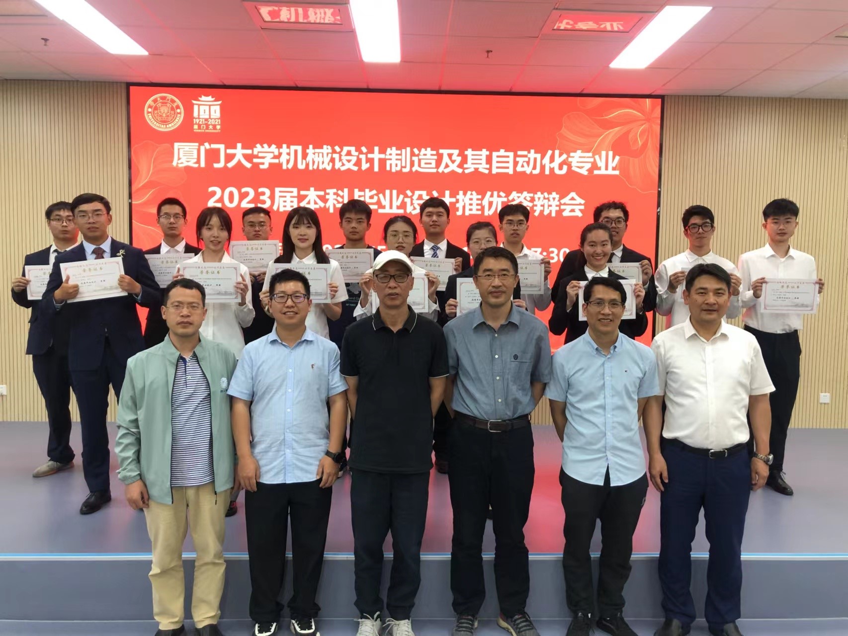 2023年5月25日下午,在厦门大学教务处的支持下,由机电工程系主办,工程技术中心协办的机械设计制造及其自动化专业2023届本科毕业设计推优答辩会在新工科大楼218报告厅顺利举办。评审专家组由席文明教授、卓勇教授、马盛林副教授、秦利锋副教授和罗涛助理教授五位老师组成,席文明教授担任主席,专家组成员可基本覆盖学生相关研究方向。