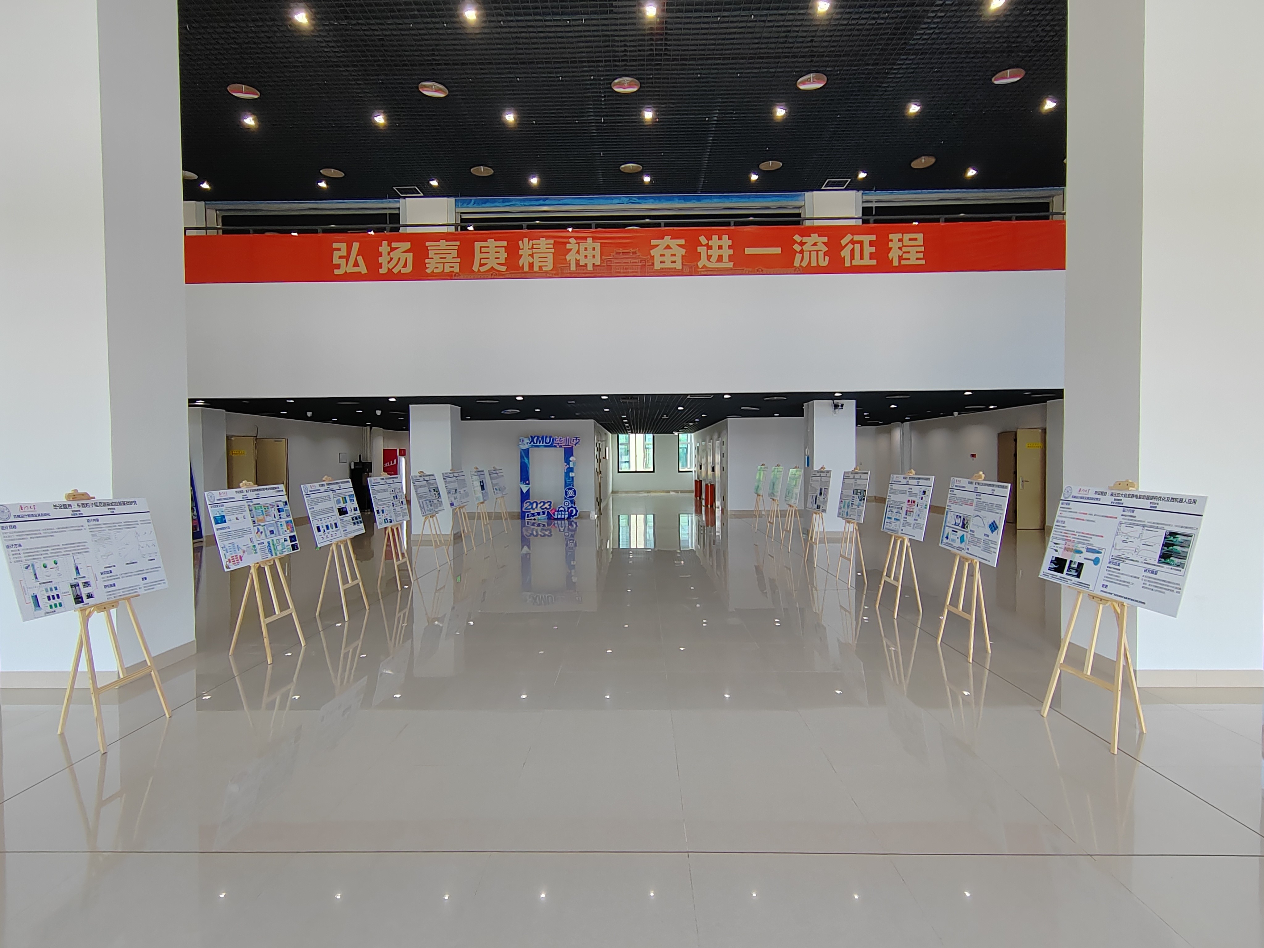 本次毕业设计推优答辩会新增了展板展示环节,该环节的展示得到了校教务处和工程技术中心的大力支持。所有参加推优答辩的同学依据自己的研究课题设计展报,展板内容精炼完整,现场观摩师生就展板内容进一步进行了探讨,现场讨论氛围热烈。据悉,本次优秀毕设展报将在新工科大楼一楼大厅进行为期一周的公开展示,以供老师同学们参观交流学习。